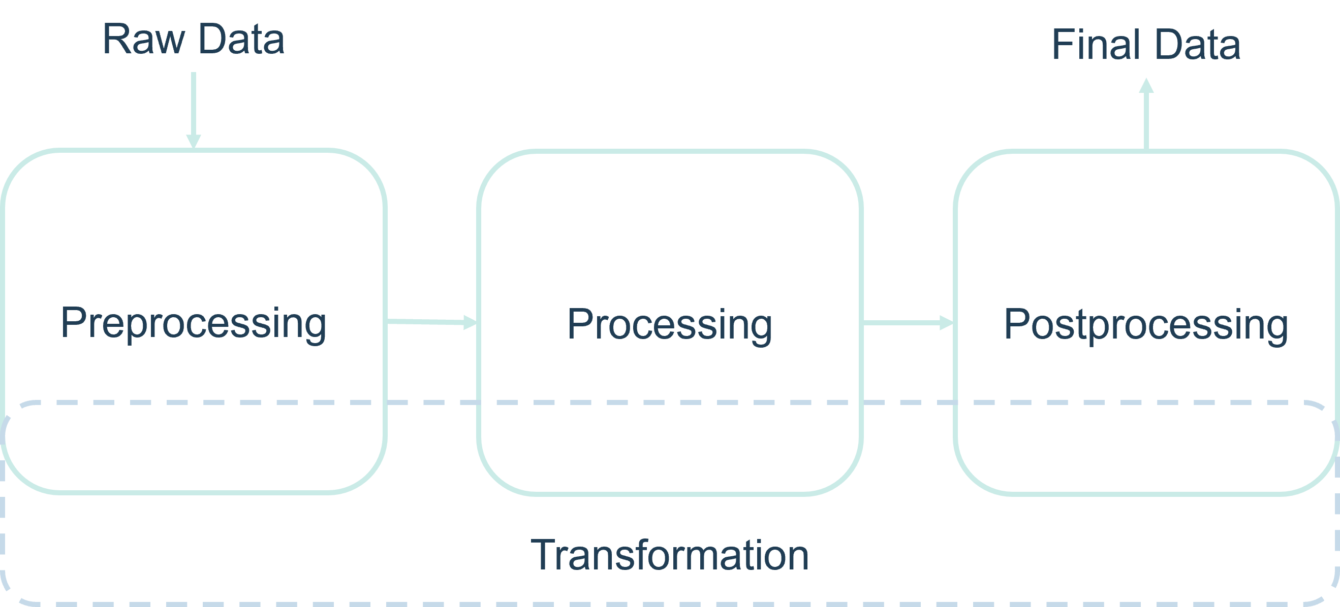 Transformation: Can happen at any time. It changes the structure or format of data.