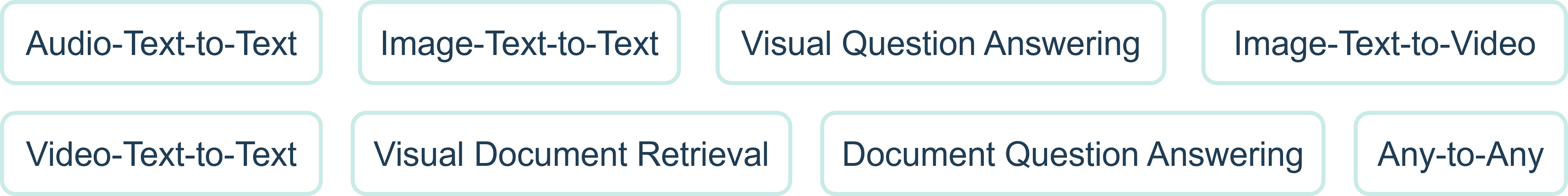 - Any-to-Any: General multimodal conversion between arbitrary input and output types