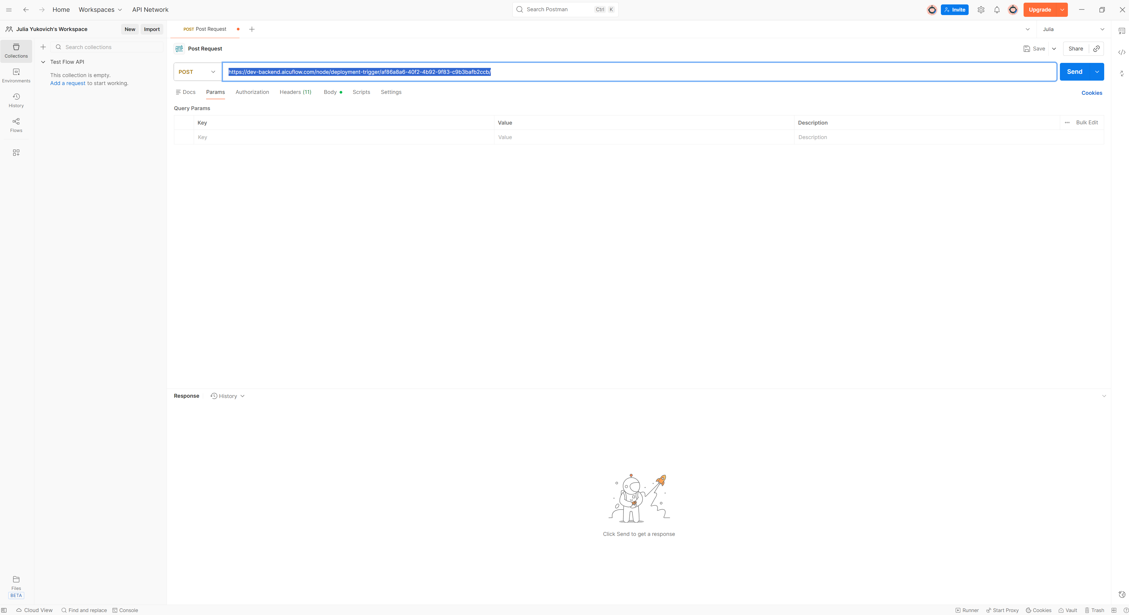 Click Send to test your deployed flow. You should receive a response with your flow's output.