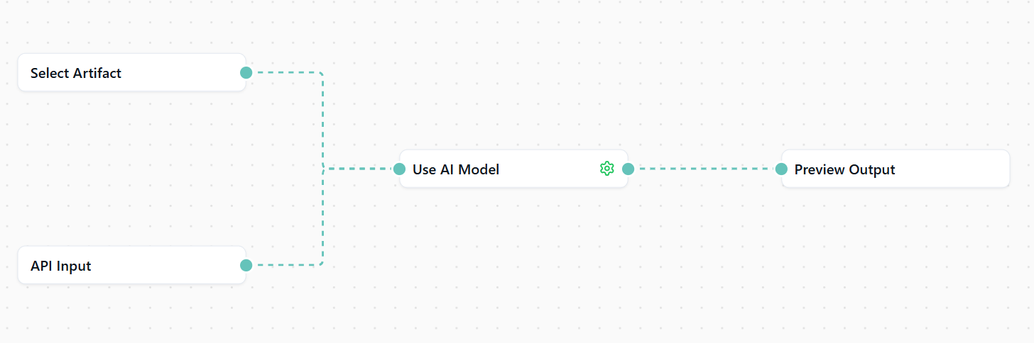 Click on the Select Artifact node and open the Artifacts tab. Choose the artifacts you want to use with the AI model for inference.